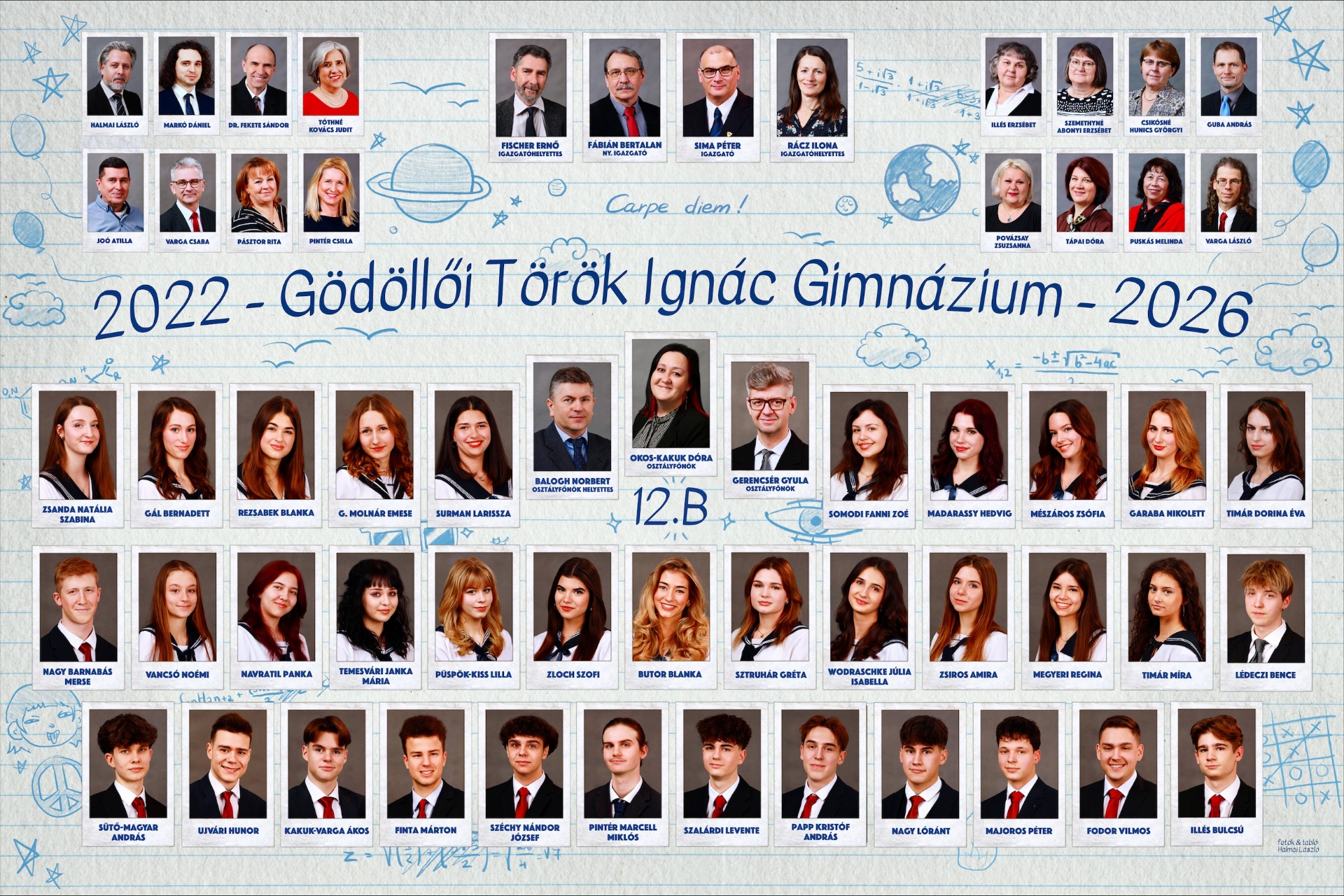 A Gödöllői Török Ignác Gimnázium 12.B osztályának 34 ballagó tanulója